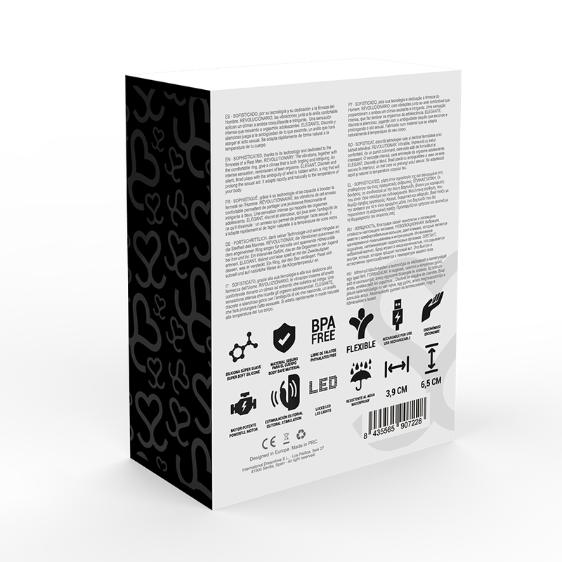 - Brad é fácil de prender no lugar, graças ao seu anel flexível. Basta posicionar Brad na base do pênis e ativar o botão de rotação que fornece uma estimulação clitoriana única.