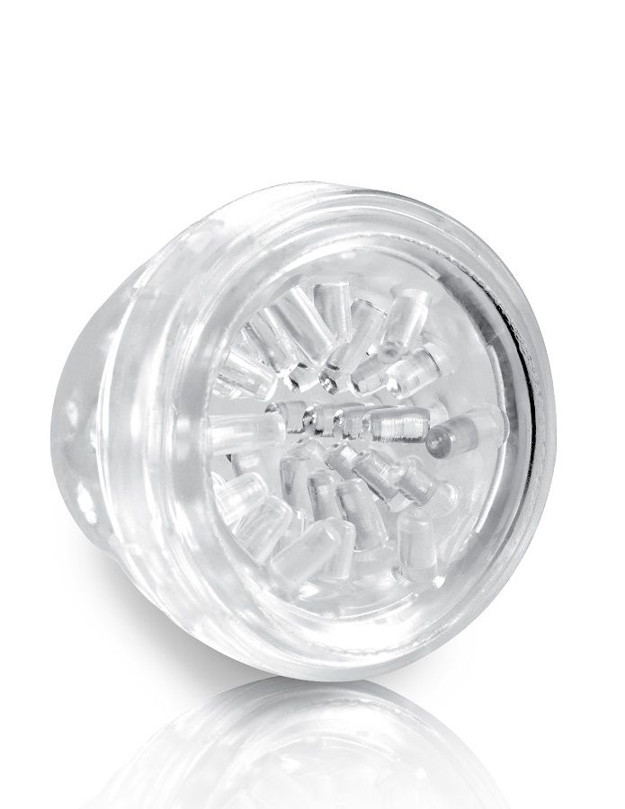 INSERÇÃO DE TEXTURA INTERCAMBIÁVEL A manga de prazer de elastômero é removível e pode ser virada do avesso para fácil limpeza após a diversão. Use bastante fo Moist antes da inserção para uma experiência extra molhada e selvagem!